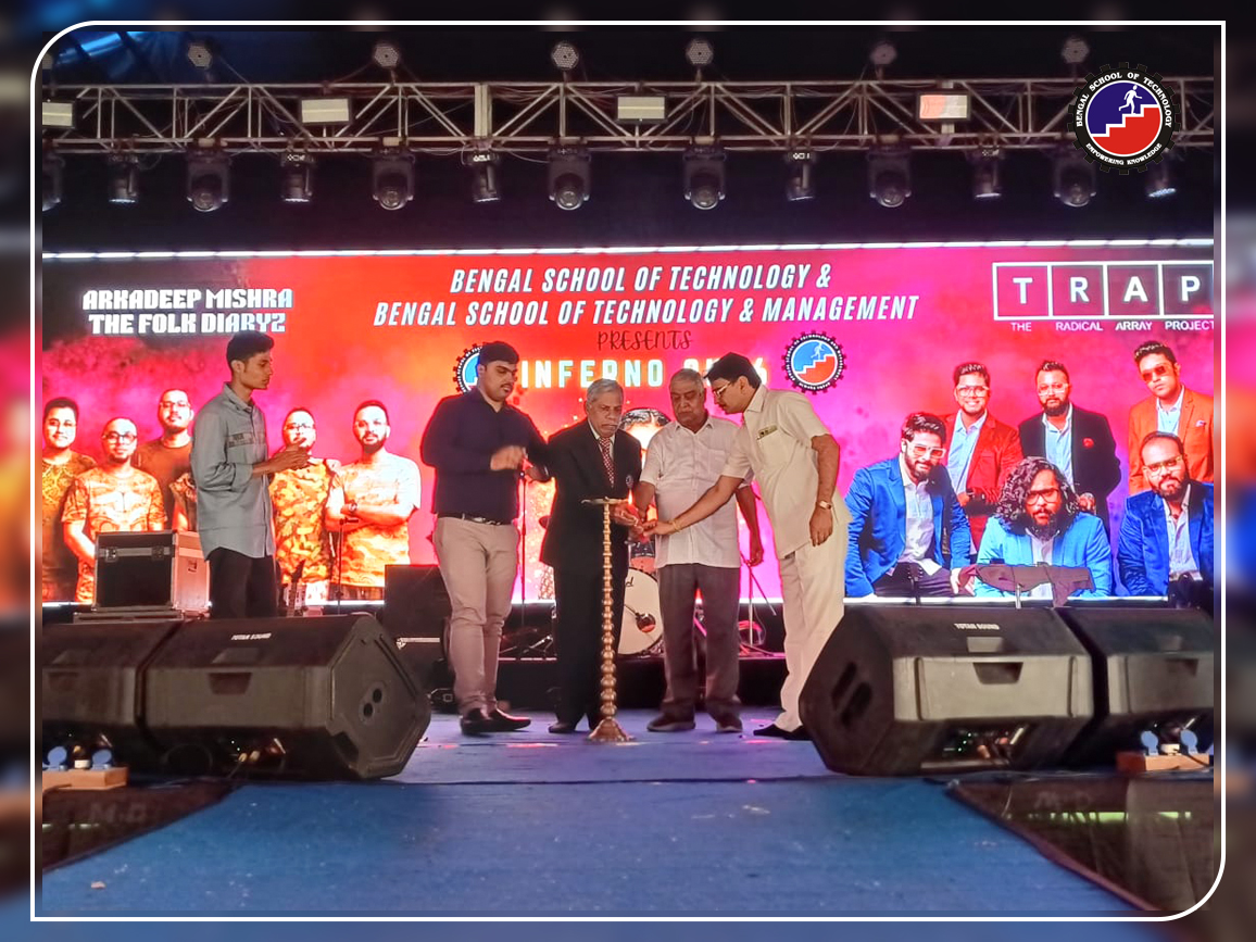 The cultural heritage of West Bengal is considered to be one of the finest and richest cultures in India. Being a part of this culture, Bengal School of Technology also contributes for keeping up the name. Our cultural committee comprises of faculties along with students and celebrates different programmes throughout the year. As the session begins we welcome the fresher students at Genesis. This is followed by the welcoming of Goddess Durga on the eve of Durga Puja and the event is named as Agomoni. The cultural committee also organizes a two day program comprising of Fest(Inferno) and Reunion of Alumni(Nostalgia). The Bengali New Year starts from 15th if April which is also welcomed by cultural program called Borsho Boron. Students as well as staffs are fully involved and participate in these programs.